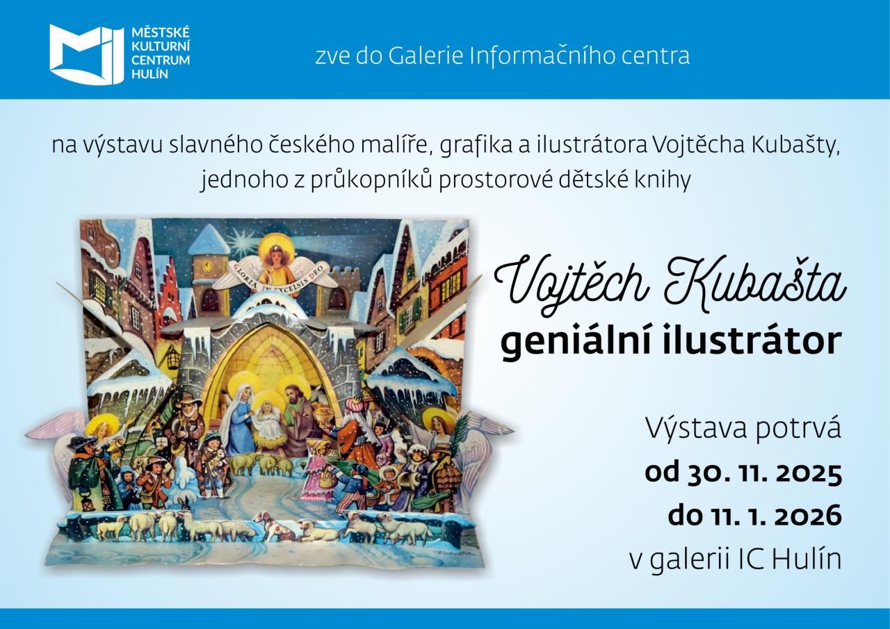 MKC Hulín zve do Galerie Informačního centra na výstavu slavného českého malíře, grafika a ilustrátora Vojtěcha Kubašty, jednoho z průkopníků prostorové dětské knihy.
