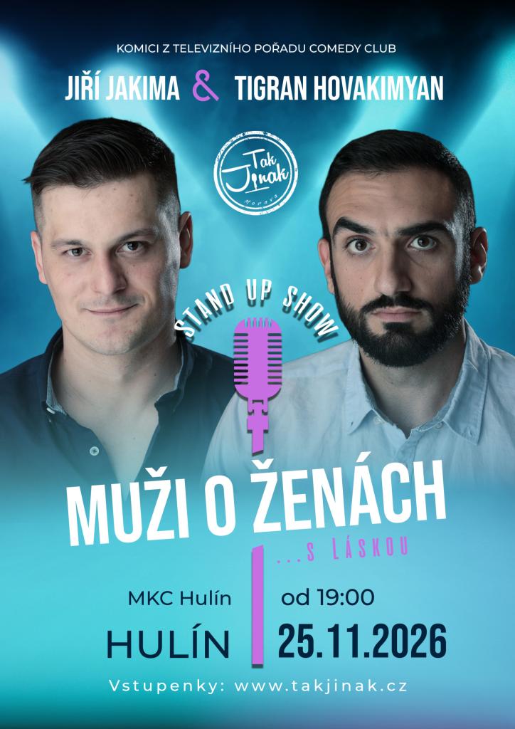 Srdečně Vás zveme na stand-up komedy Muži o ženách... s láskou, která proběhne 25. listopadu 2026 od 19:00 v sále MKC Hulín.