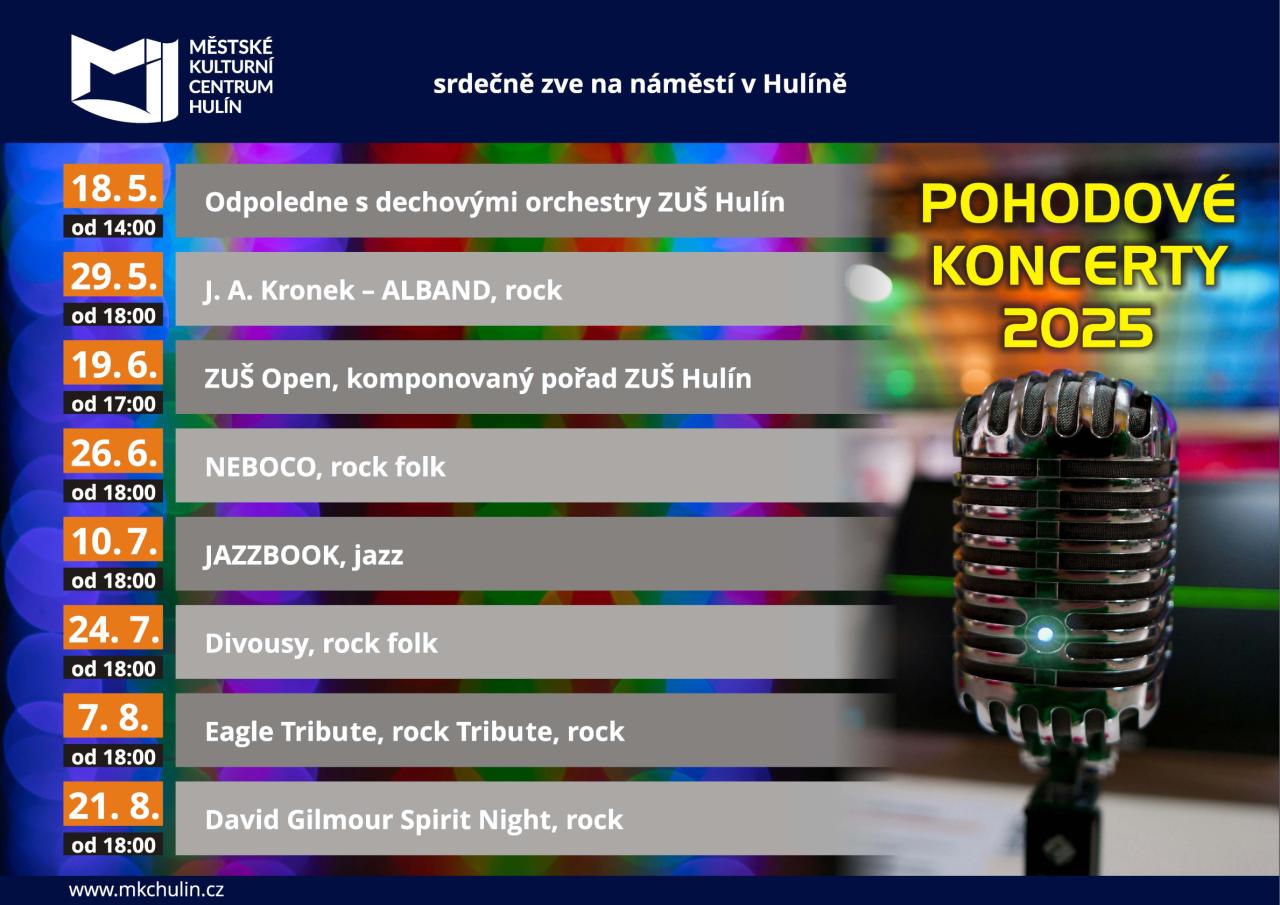 Seznam pohodových koncertů pro sezónu 2025: